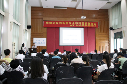 本屆獎(jiǎng)學(xué)金評選活動(dòng)自2016年6月份啟動(dòng),經(jīng)過層層遴選,最終有10支隊(duì)伍進(jìn)入決賽答辯環(huán)節(jié)展開最后角逐。答辯環(huán)節(jié)分為ppt項(xiàng)目展示及評委提問,最后評出一等獎(jiǎng)1名、二等獎(jiǎng)2名、三等獎(jiǎng)3名、入圍獎(jiǎng)4名,由評委為獲獎(jiǎng)隊(duì)伍頒獎(jiǎng)。至此,第二屆華綠環(huán)保創(chuàng)新獎(jiǎng)學(xué)金評選活動(dòng)圓滿落幕。