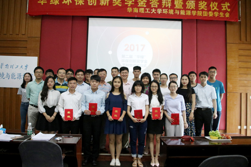 2017年6月22日,第二屆華綠環(huán)保創(chuàng)新獎(jiǎng)學(xué)金答辯暨頒獎(jiǎng)儀式在華南理工大學(xué)環(huán)境與能源學(xué)院舉行,出席儀式的評委嘉賓的有廣東省環(huán)境監(jiān)測協(xié)會(huì)秘書長顧凜先生、華南理工大學(xué)環(huán)境與能源學(xué)院黨委副書記吳耀華、副院長朱能武教授、汪曉軍教授、馮春華教授以及我司副總經(jīng)理姜元臻先生。